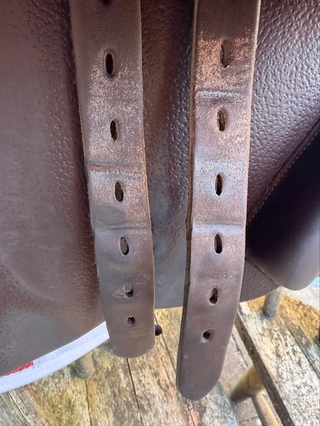 Brun 17 tum hoppsadel med djupare säte och kåpstorlek 4X som passar ryttare runt 165-170 cm. Bomvidden är 28/M/och upplevs som normal mot vid.